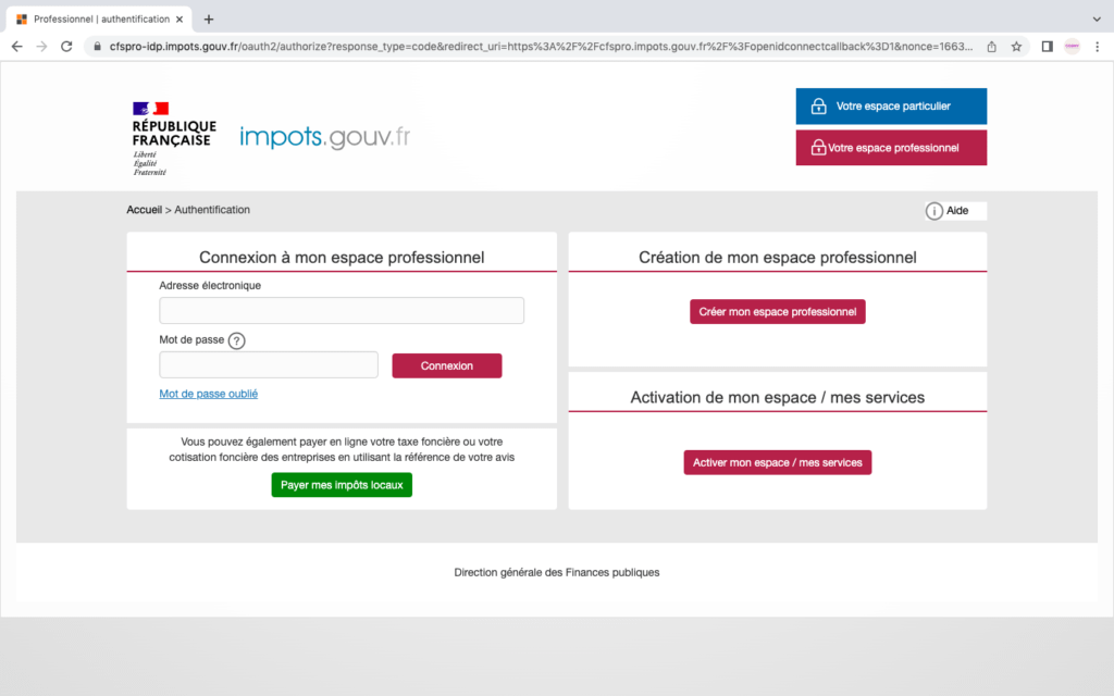 Tu viens de créer ton compte professionnel sur Impots.gouv.fr